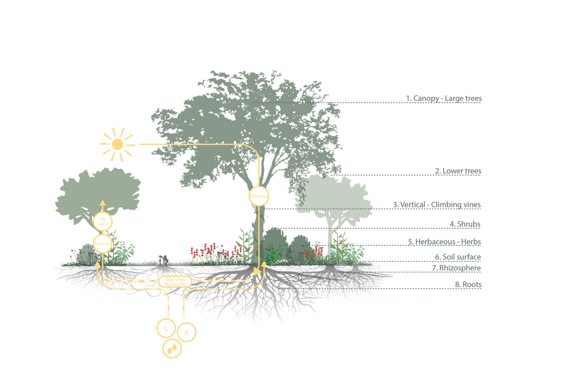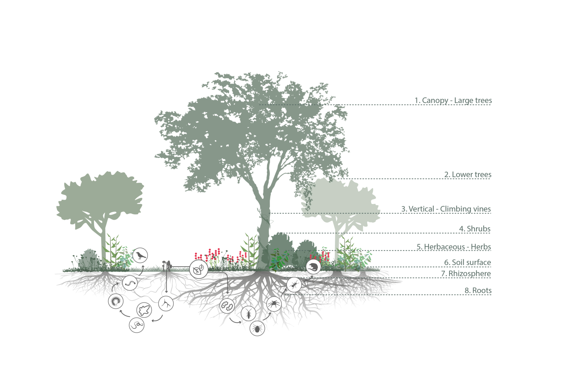 “Inspired by these natural processes, we have shifted from designing planting schemes to initiating planting populations, where organisms coexist harmoniously and support each other. This entails creating the conditions for the natural processes to happen.”
