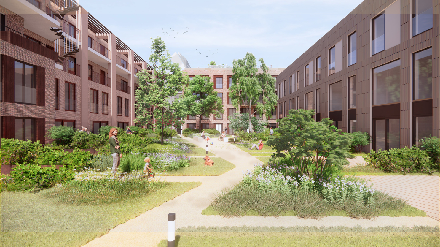 Bij de ontwikkeling van de nieuwe wijk is gekozen voor een klimaatadaptieve, energieneutrale en toekomstbestendige aanpak, gebaseerd op de principes van circulariteit en veerkracht. We hebben hiervoor een geïntegreerde watermanagementstrategie ontwikkeld voor zowel de bouwblokken als de openbare ruimte, bedoeld om water zo veel mogelijk ter plaatse vast te houden en hergebruik van regenwater te faciliteren.