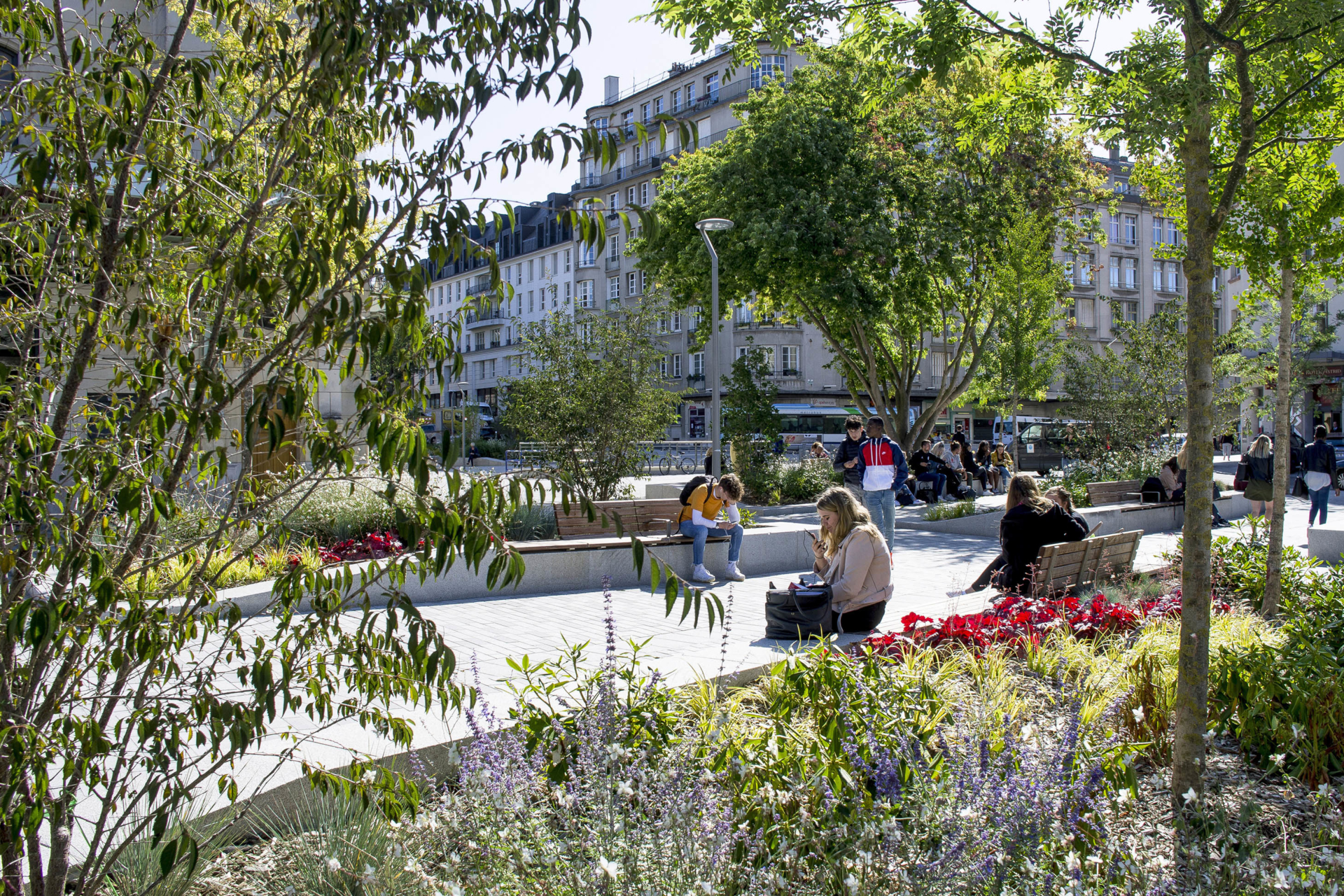 The spaces along the edges of the square and its surroundings formed an underused commercial frontage that was constrained by the proximity of car traffic and parking. The public realm has been reconfigured to provide a more generous and comfortable space for restaurant terraces and outdoor sales areas, contributing to the revitalisation of the area and encourages pedestrians to wander and spend more time here.