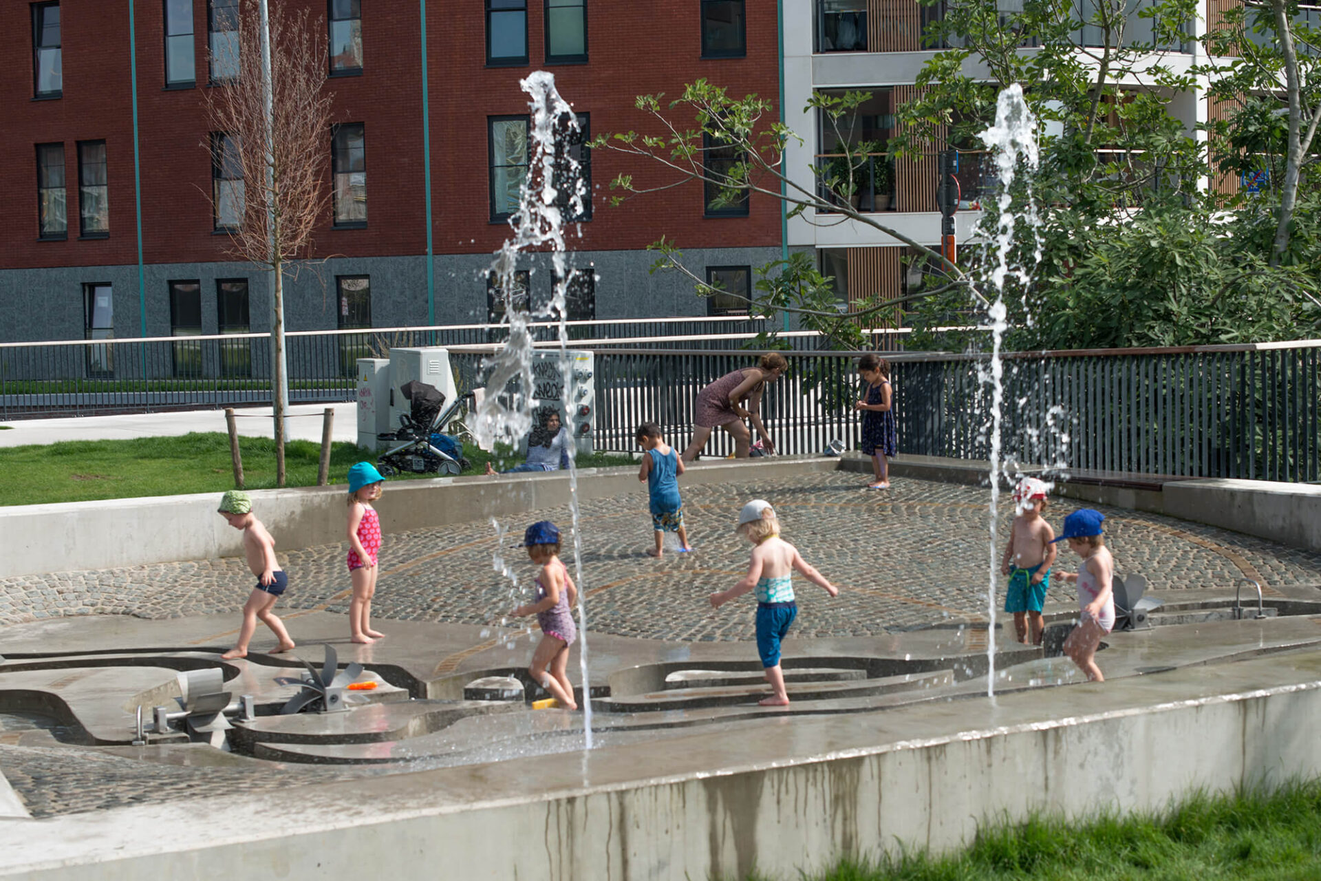 Sluis park is structured around a network of soft mobility routes, weaving together a variety of distinct spaces. Residents and visitors can enjoy playgrounds, an event square, a walnut orchard, generous lawns, and water features, all designed to encourage interaction and relaxation. The park offers a thoughtful balance between programmed spaces and flexible open areas, making it a natural extension of the neighbourhood—an urban garden at the community’s doorstep.